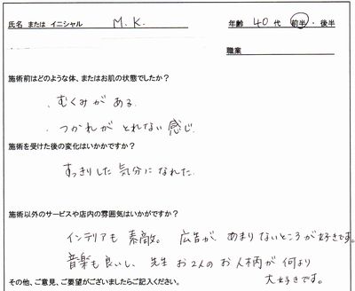 首肩こりでお困りのY.K様(大田区にお住いの38歳女性/職業:会社員) chat